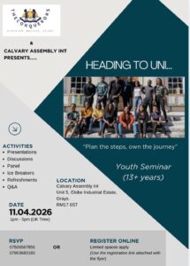 Are you preparing to take the next step into university? Join us on the 11th of April for an empowering and practical workshop designed to enable the school leaver navigate the journey with confidence and clarity.